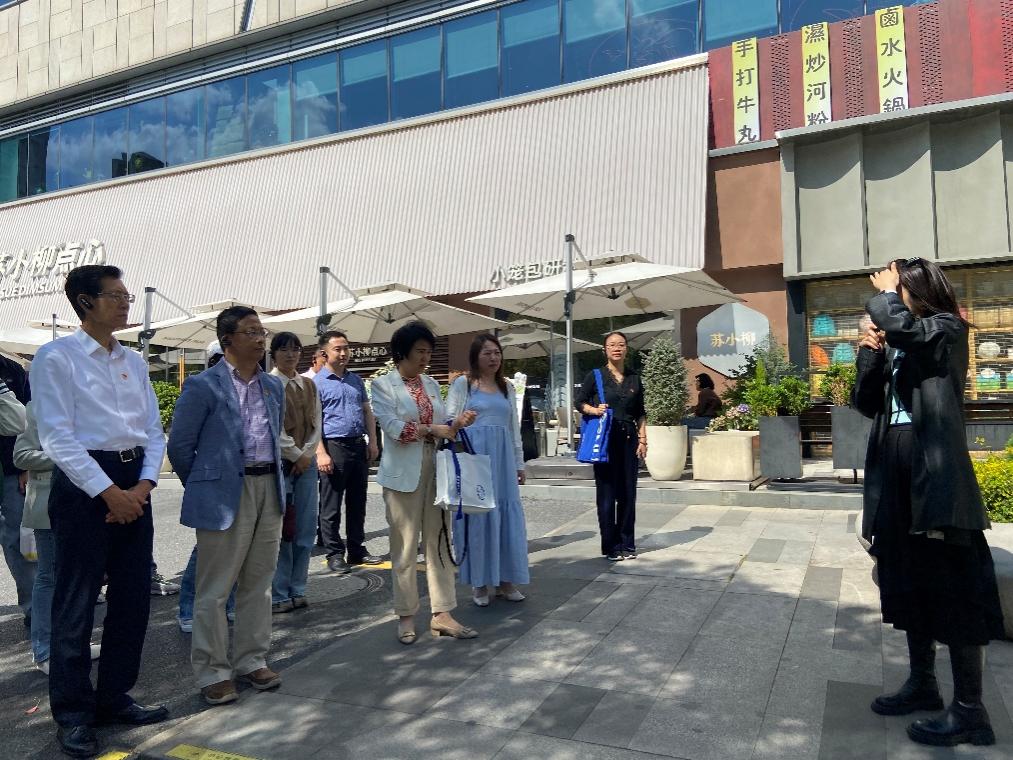随后,党员们来到了大学路网红街区。这里不仅是年轻人喜爱的时尚聚集地,更是党建引领街区治理的典范,成为五角场商圈的一道靓丽风景线。创智天地推广部市场推广经理邵松承分享了党建引领街区治理的经验做法,介绍了大学路街区如何通过党建引领实现文化、商业与社区治理的有机结合。党员们对街区的独特治理模式和治理成效表示高度赞赏。