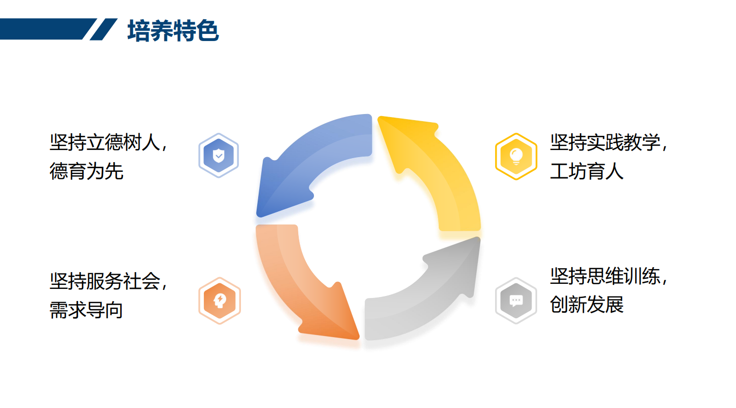 ③坚持思维训练,创新发展。适应数字化时代发展和全球变革需要,注重在专业教育与通识教育中开展思维训练,使学生不断提升逻辑思维能力、批判性思维能力、创造性思维能力、格局思维能力和超限思维能力,具备良好的创新发展动力和能力。