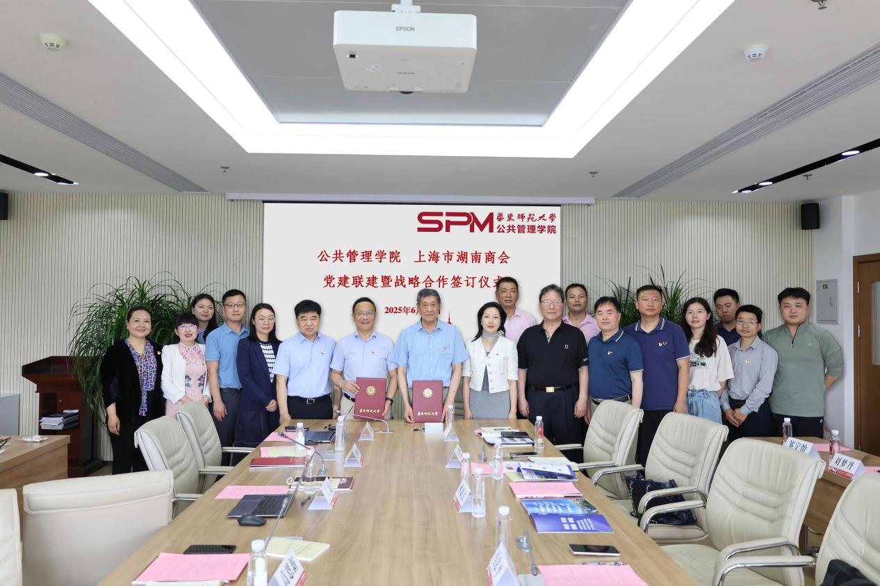 2025年6月12日,上海市湖南商会、PA直营官网举行党建联建合作协议签约仪式暨学习贯彻中央八项规定精神联组学习活动。湖南省驻沪单位党委副书记(主持工作)、湖南省政府驻上海办事处副主任(主持工作)马宏平,机关党委专职副书记李薇,交流合作处副处长苏胜鹏及商会代表,PA直营官网党委书记高恩新,副书记王婧,党委委员、副院长王法硕,劳动与社会保障系系主任曹艳春,MPA中心副主任赵继娣,专职组织员王祖亮等共同出席此次活动。会议由党委副书记王婧主持。